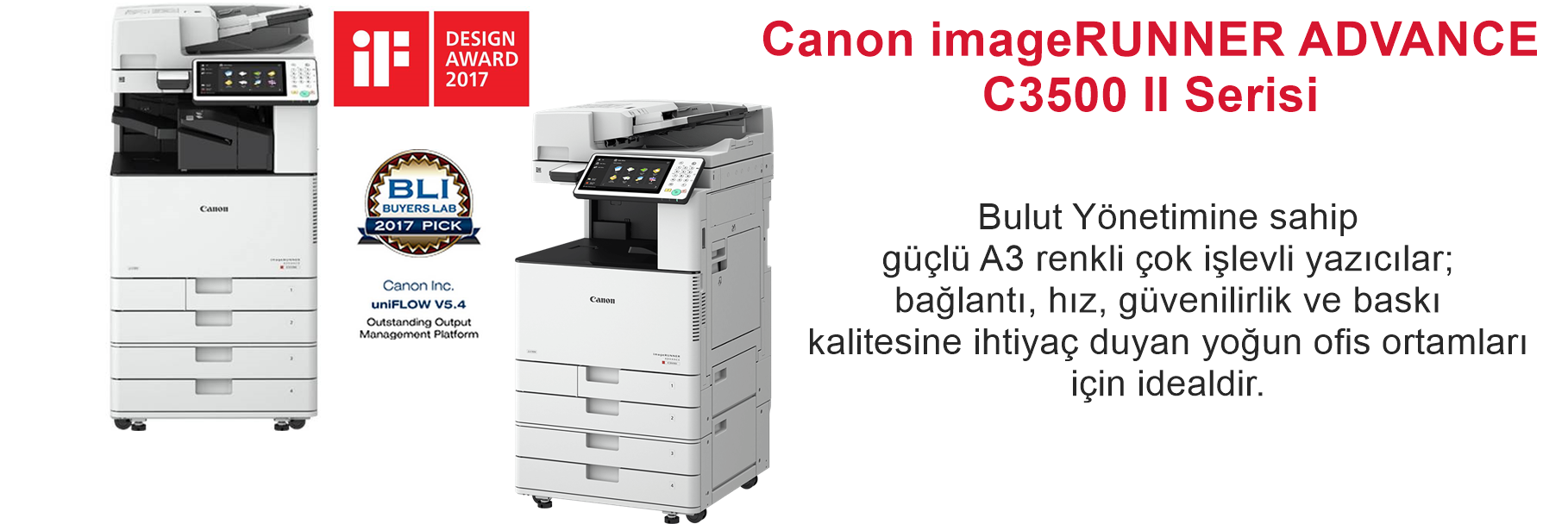 Zorlu ofisler için ideal olan bu A3 renkli çok işlevli yazıcı serisinde hız, zengin özellikler, esnek bağlantı ve Bulut Yönetimi standart olarak sunulur. Uçtan uca belge yönetimi özelliklerinin ve çok yönlü belge sonlandırma işlemlerinin keyfini çıkarın.